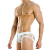 Мужские трусы из коллекции C-Through от греческого бренда Modus Vivendi. Cшиты из сетчатой хлопчатобумажной ткани. Гульфик без подкладки. Широкая поясная резинка с логотипом бренда. Края обшиты контрастным материалом. На фото - трусы размера M. Рост модели 182 см.